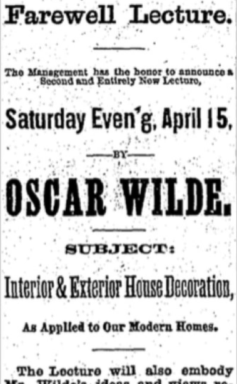 Contains several local contemporary newspaper reports of Wilde's second appearance in Denver on April 15th, and quotes the known content of Wilde's alternative lecture The House Beautiful.