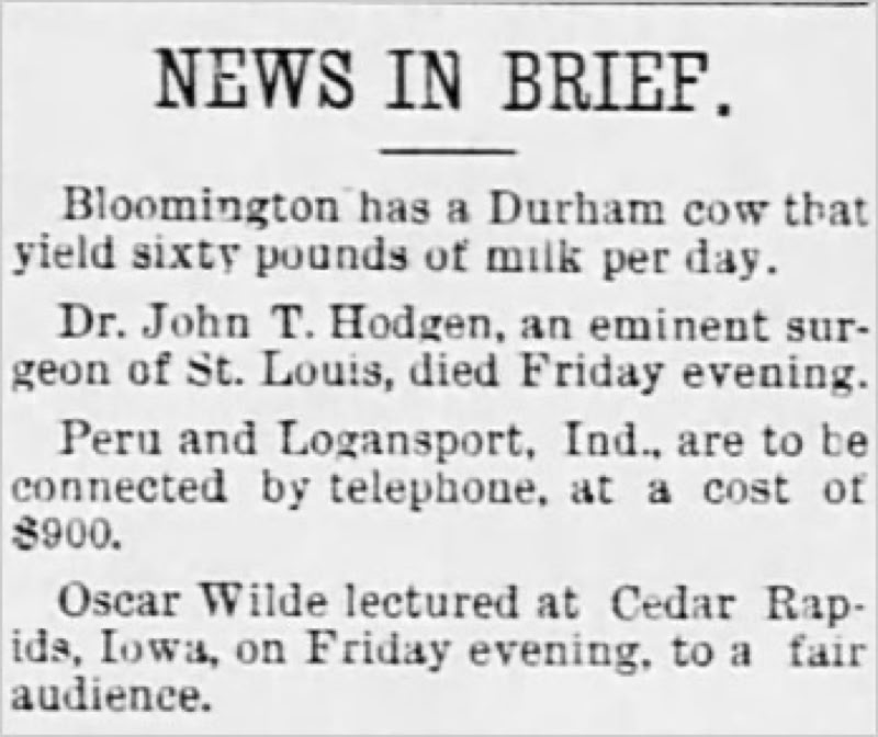 No record is currently available as to whether Wilde stayed overnight in Cedar Rapids. If he did, it would most likely have been at the Northwestern Hotel.
