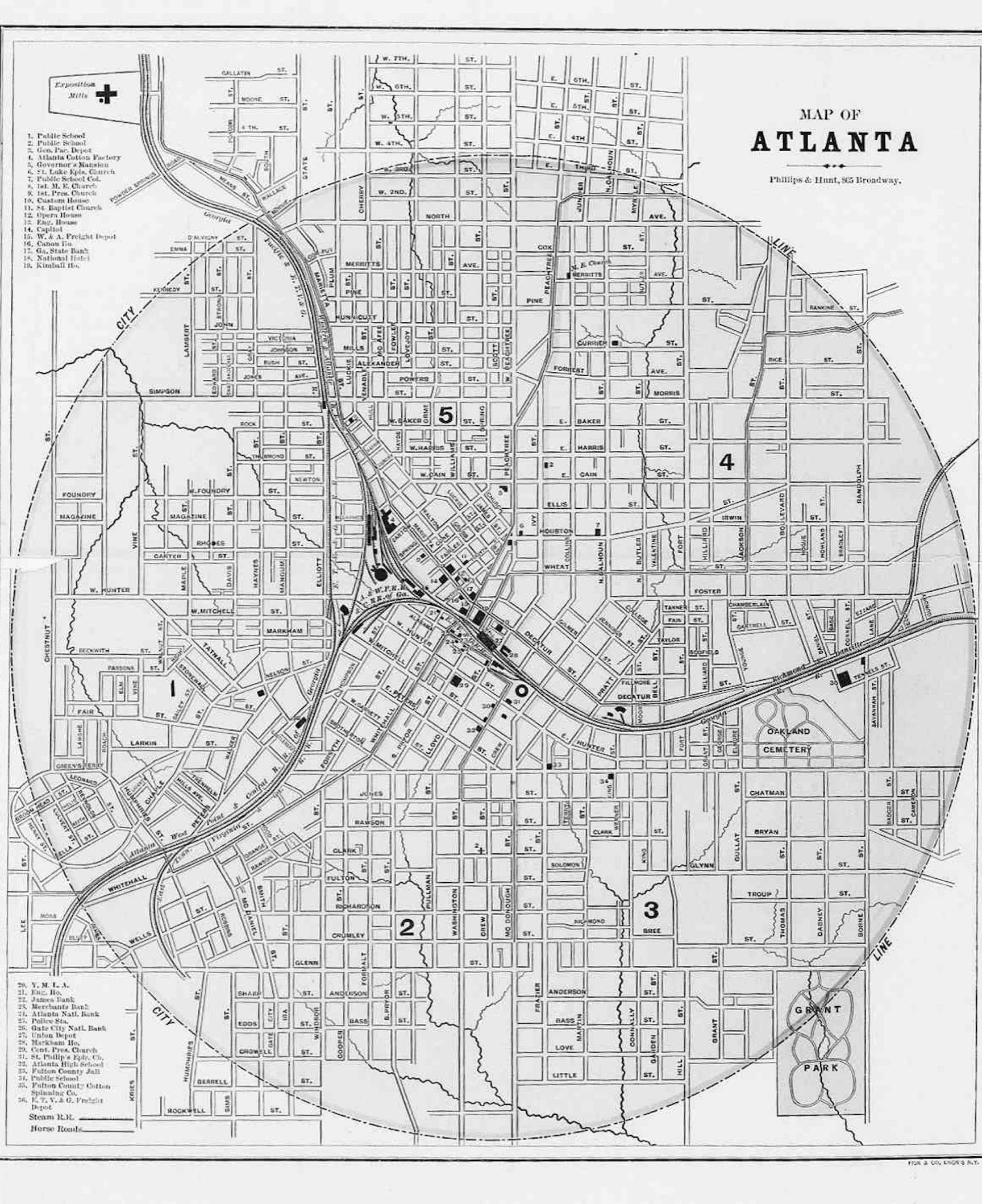 DeGive's Opera House (#12) is NW of the hotel on Marietta (extn of Decatur) diagonally opposite the Capitol building (#14).
