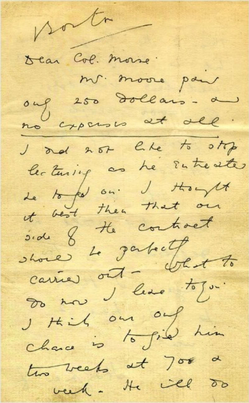 “Mr. Moore paid only 250 dollars - and no expenses at all.”
