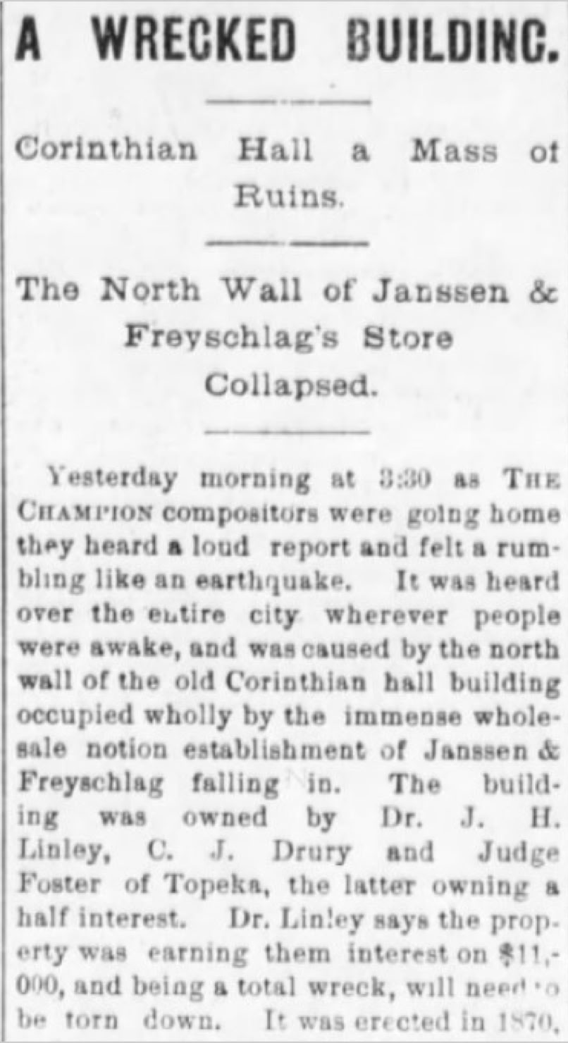 Built: 1870-71 (Judge C. G. Foster, C. J. Drury, J. M. Linley) as an opera house