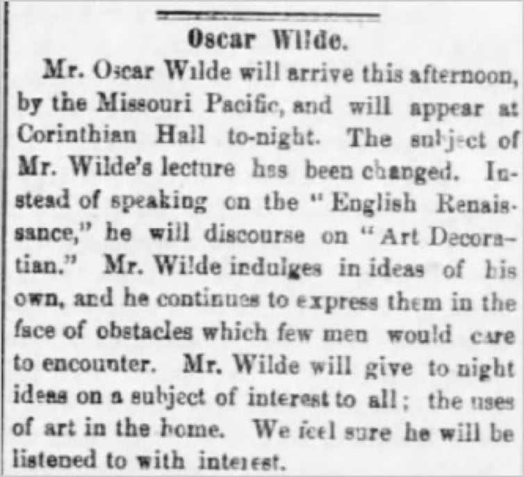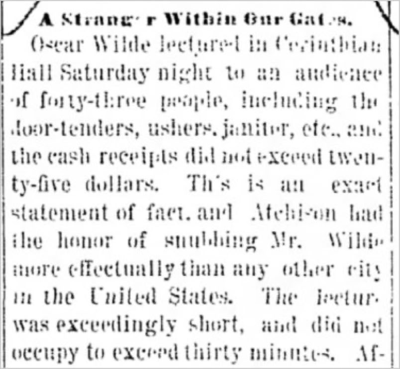 Matters and Things, a review of Oscar Wilde in Atchison.