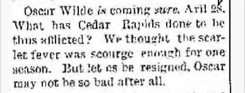 No record is currently available as to whether Wilde stayed overnight in Cedar Rapids. If he did, it would most likely have been at the Northwestern Hotel.