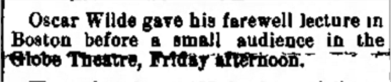 Wilde's second lecture in Boston.
