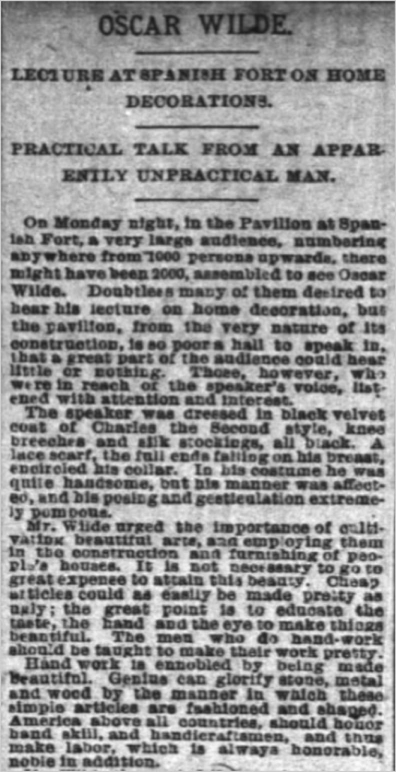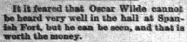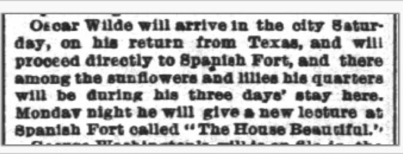 However, the news clipping opposite indicates that Wilde intended to reside at Spanish Fort and, if so, he would have stayed at the Spanish Fort Hotel. This seems likely.